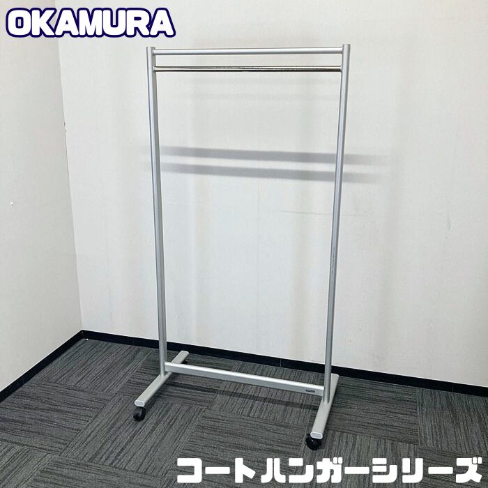 オカムラ コートハンガーシリーズ L956BB Z637 キャスター付きコートハンガー W900×H530×H1700 シルバー 中古