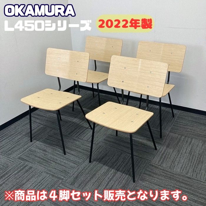 オカムラ L450シリーズ ミーティングチェア[4脚セット販売] L450AD-MK92 背座:ナチュラル/フレーム:ブラック 2022年製 中古 ➉