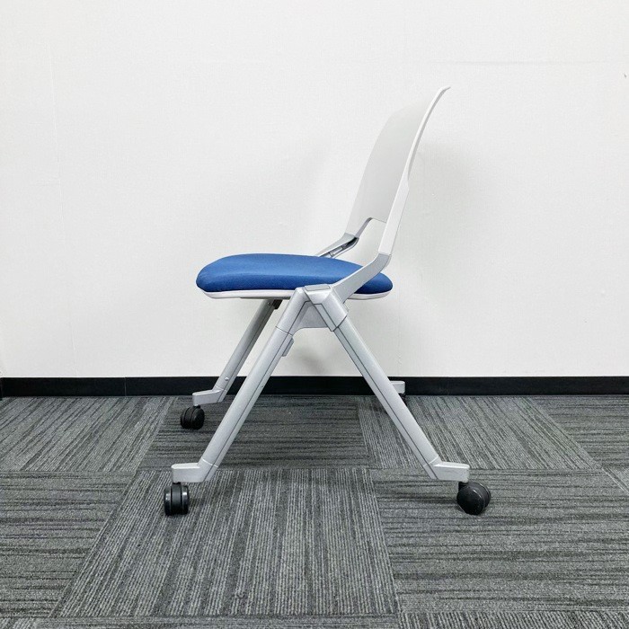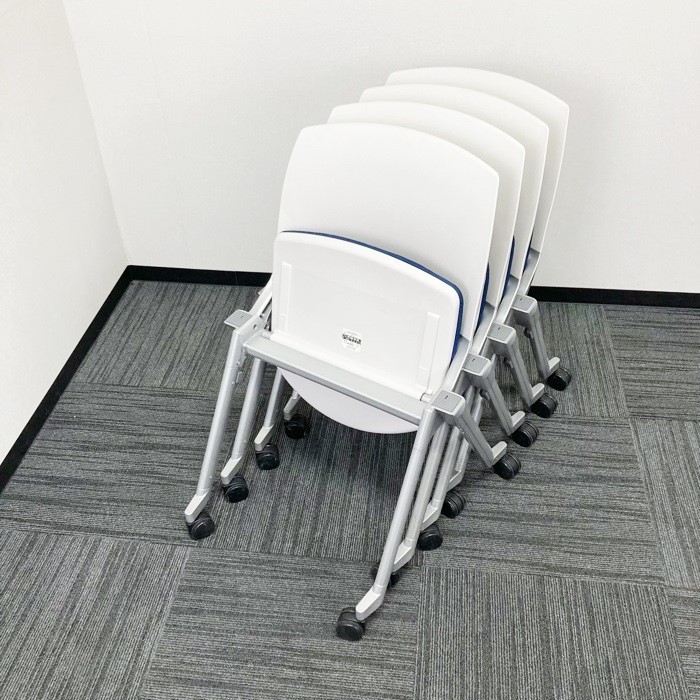 内田洋行 FM-320シリーズ 平行スタックチェア FM-320CN W592×D586×H800 背:ホワイト/座:ダークブルー 中古 ⑳