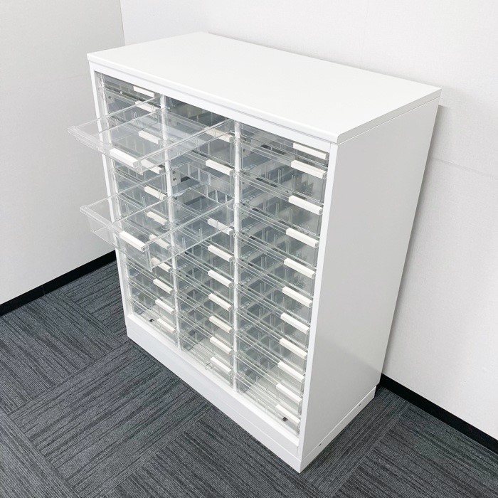 イトーキ シンラインシリーズ クリスタルトレイ HTM-109KAH-W9 W900×D450×H1118 A4対応:浅型3段/深型30段 天板付き ホワイト 中古 ⑩