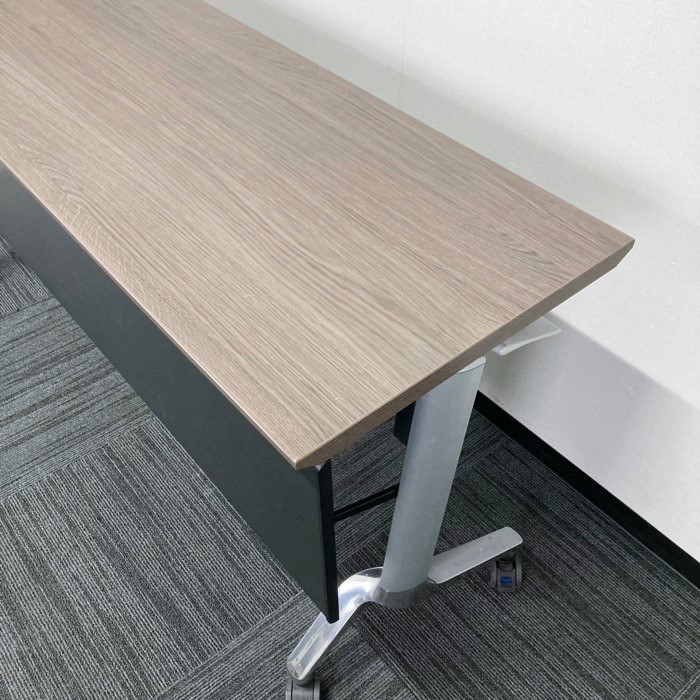 コクヨ コンフェストシリーズ 平行スタックテーブル KTT-1302B MG5 W1500×D450×720 幕板付き 天板:アッシュブラウン/脚:シルバー 2015年製 中古
