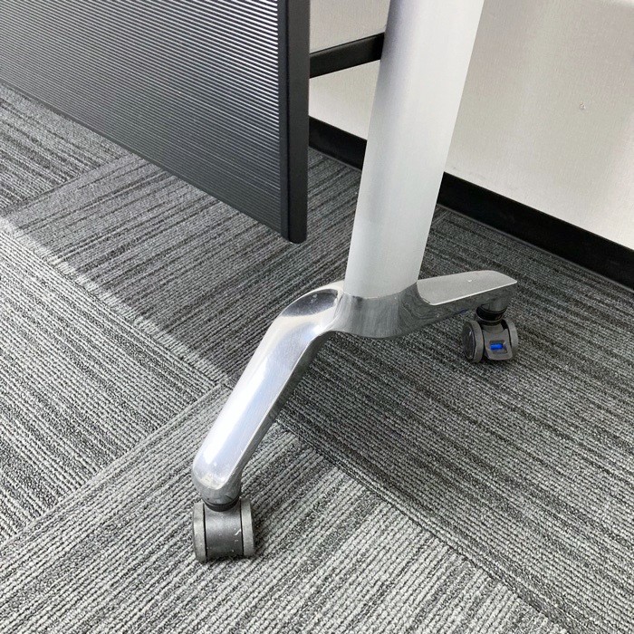 キャスター付きで移動も手軽に行なえます、また不使用時は天板を跳ね上げ、重ねて収納が出来ます。
