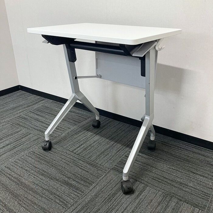 コクヨ リーフライン/Sシリーズ 平行スタックテーブル KTT-126APAWNN W650×D450×H720 幕板付き 天板:ホワイト/脚:シルバー 2018年製 中古