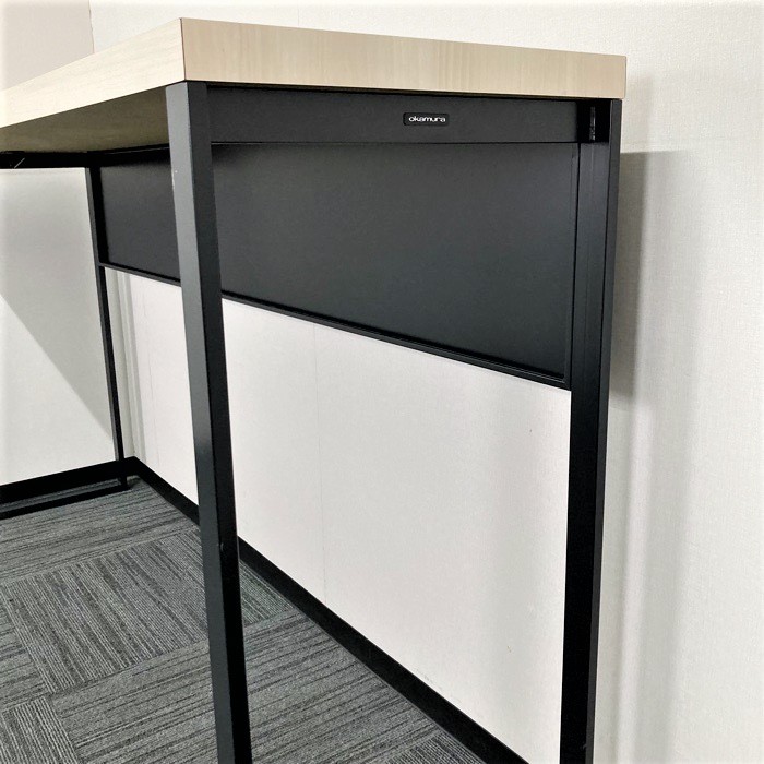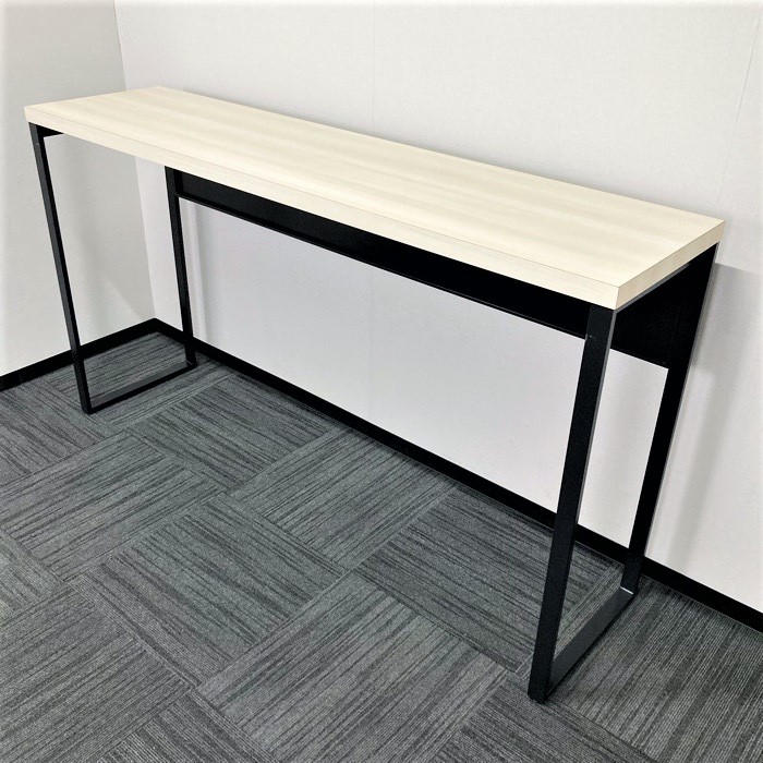 オカムラ アルト ピアッツァシリーズ 片面カウンターテーブル MB619A MX51 W1800×D450×H1000 天板:プライズウッドライト/本体:ブラック 2018年製 中古 ⑩
