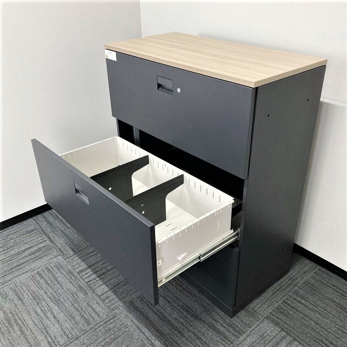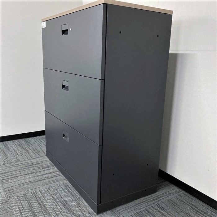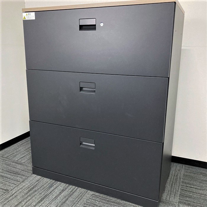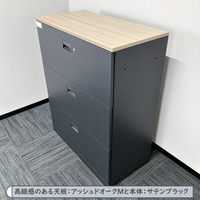 イトーキ エスキャビネットシリーズ 3段ラテラル H1-M1090AAS-T1 W900×D450×H1118 天板:アッシュドオークM/本体:サテンブラック 2018年製 中古