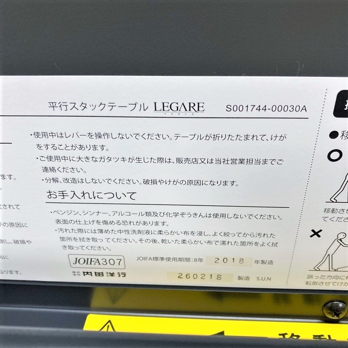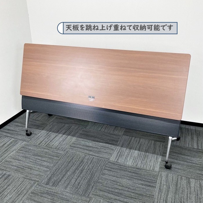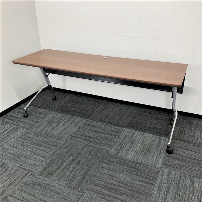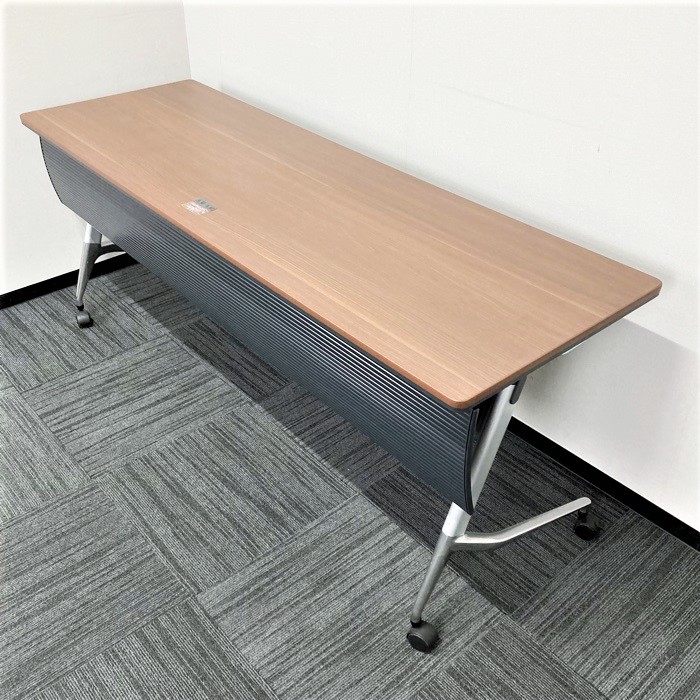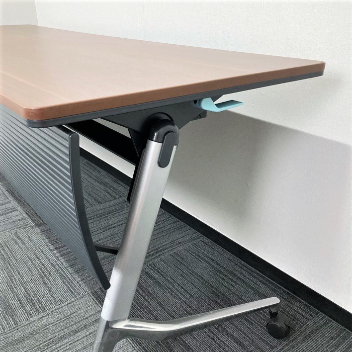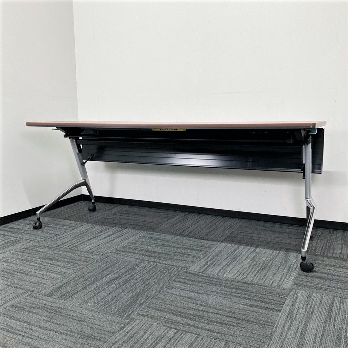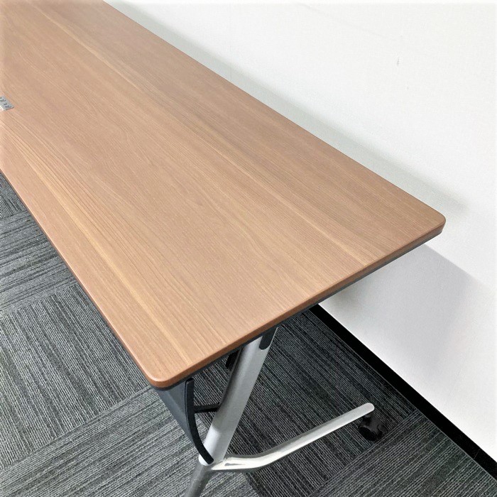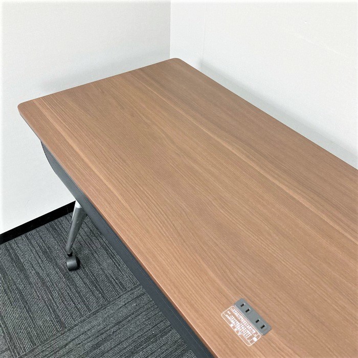 内田洋行 平行スタックテーブル レガーレシリーズ W1800×D600×H720 天板:ダークファインウッド/脚:シルバー 2018年製 中古 ※カバー欠品 ※SALE品