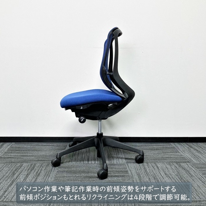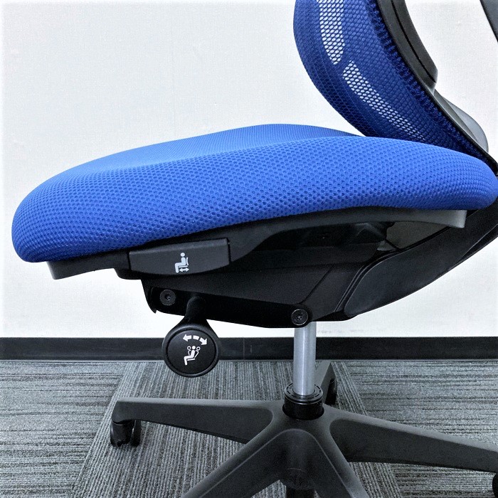 オカムラ シルフィーチェアシリーズ オフィスシーティング C631XR-FMP3 ブラックフレーム ローバック 背/座:ミディアムブルー 2018年製 中古 ⑩