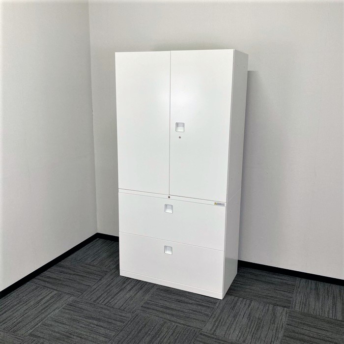 オカムラ レクトラインシリーズ 両開き+2段ラテラルキャビネット W900×D450×H1810 ネオホワイト 2019年製/2021年製 中古 ⑩