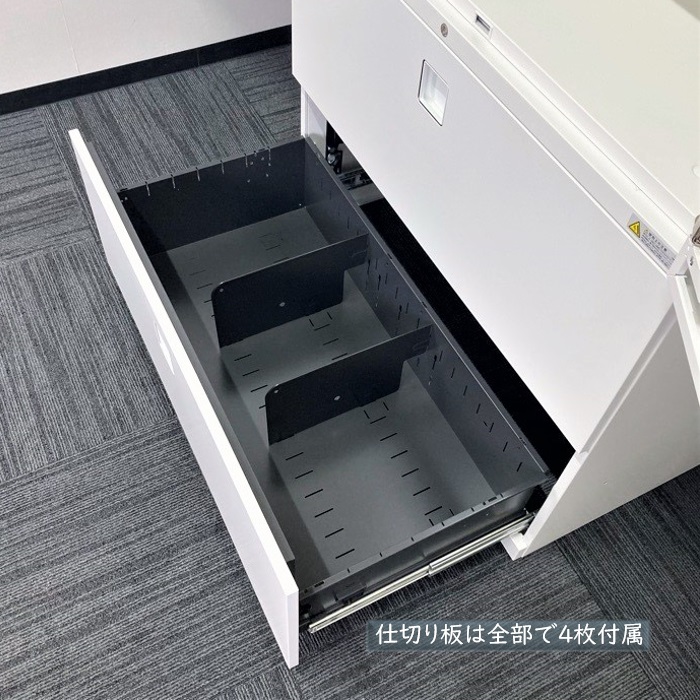 ・2段ラテラルキャビネット:仕切り板4枚、ラッチ付き、セーフティロック、ベース付き