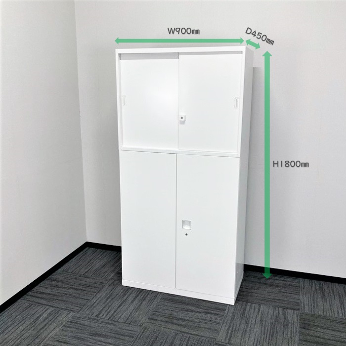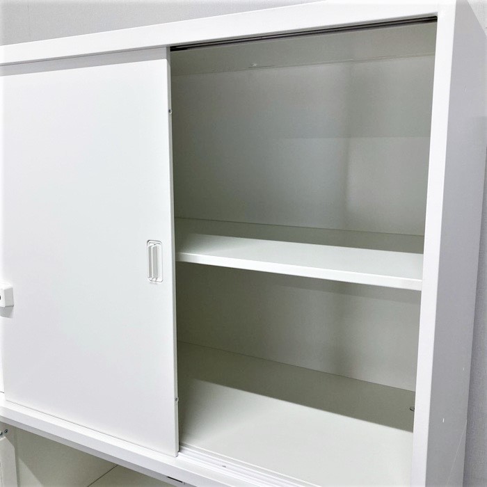 オカムラ レクトラインシリーズ 引違い書庫+両開き書庫 W900×D450×H1810 ネオホワイト 2018~2019年製 中古 ⑩