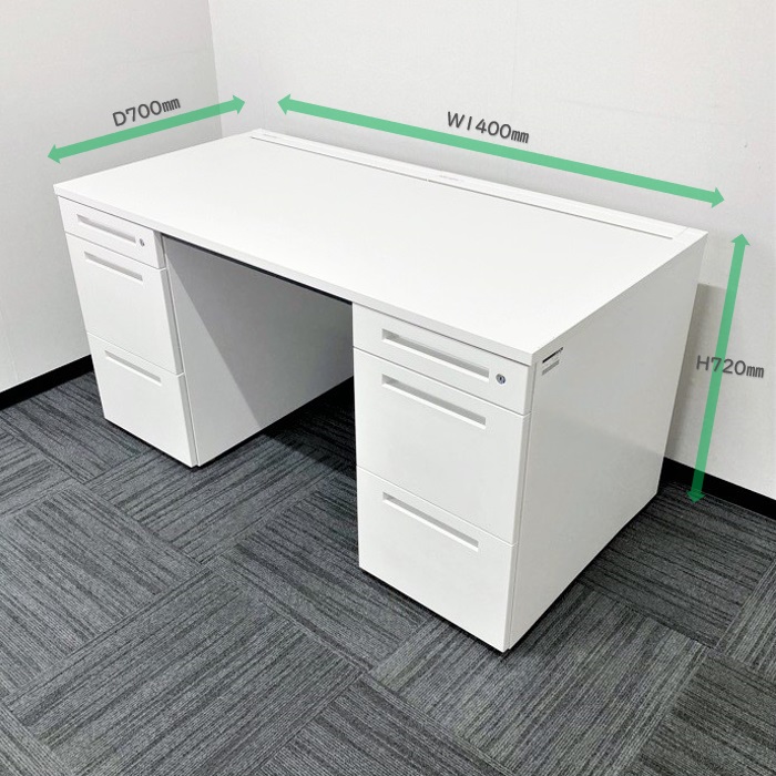 イトーキ CZRデスクシリーズ 両袖デスク CZR-147BAC-9W9 W1400×D700×720 ホワイト 中古 ⑩