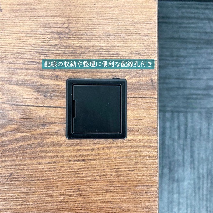 また、天板端に配線孔を設けてますのでスタンド照明やコーヒーメーカーなど設置した際も配線をすっきり見せられます。