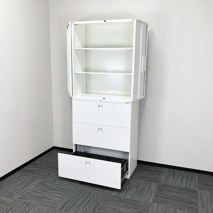 オカムラ レクトラインシリーズ 両開き+3段ラテラル W900×D450×H2150 ネオホワイト 2013年製 中古 ⑩