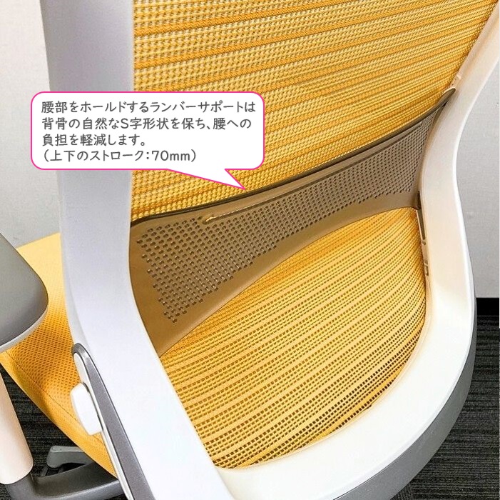 オカムラ コーラルチェアシリーズ オフィスシーティング CQ85GZ FSH6 ハイバック アジャストアーム ランバサポート付き マンゴーイエロー 2013年製 中古