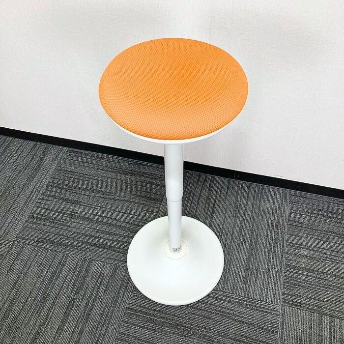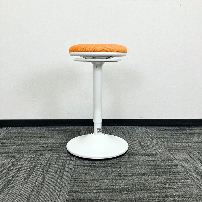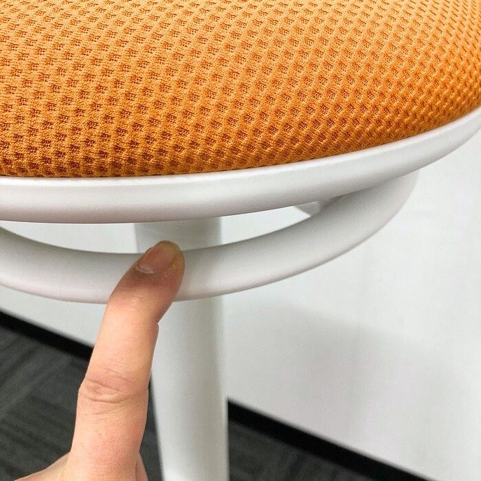 オカムラ ピルエットシリーズ スイング脚スツール L122EZ Φ350×H565~815 座:オレンジ/本体:ホワイト 2017年製 中古 ⑳