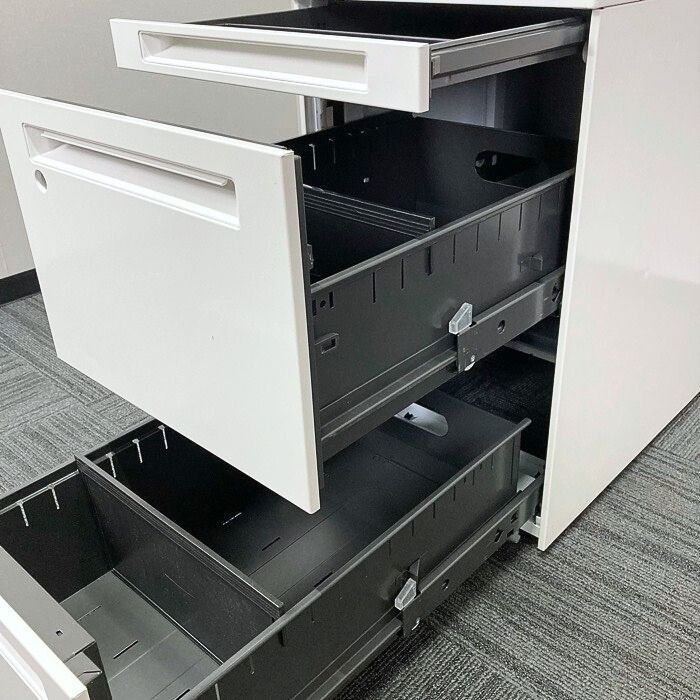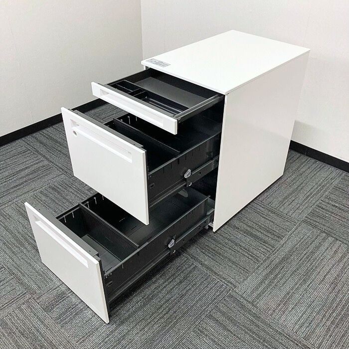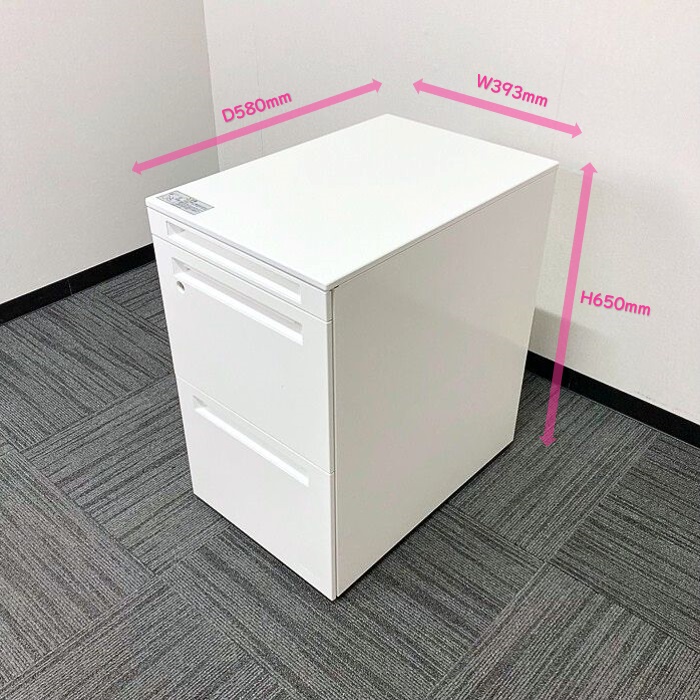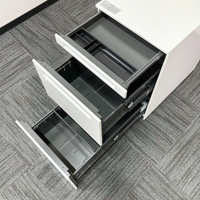オカムラ プロユニットシリーズ 3段ワゴン DNC1CX Z975 W393×D580×H650 ネオホワイト 2017年製 中古 ⑩