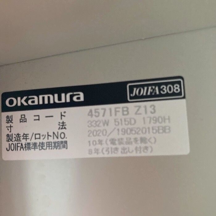 オカムラ FZタイプシリーズ 1人用ロッカー 4571FB Z13 W332×D515×H1790 ライトスモーク 2020年製 中古 ⑩