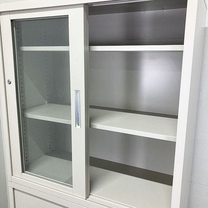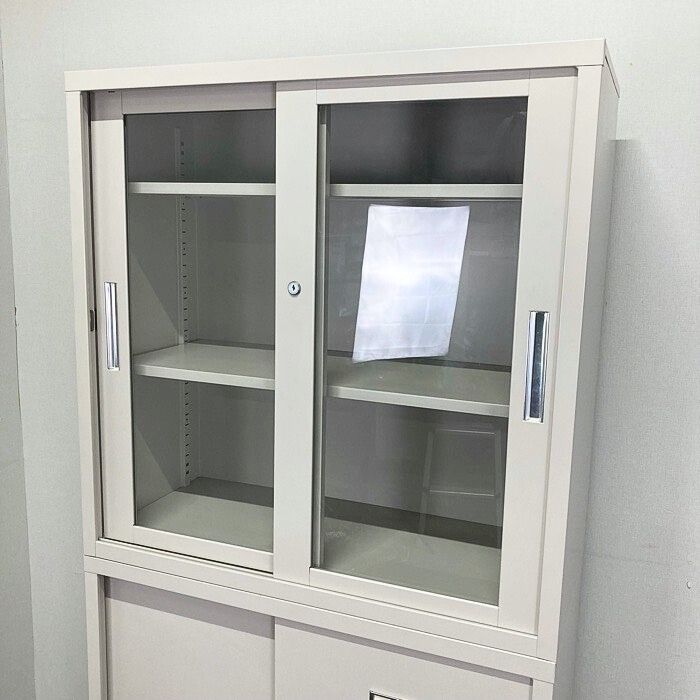 イトーキ 引違いガラス扉+引違いスチール扉書庫 W880×D400×H1820 WE色 中古 ⑳