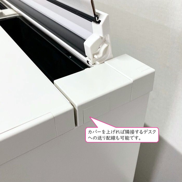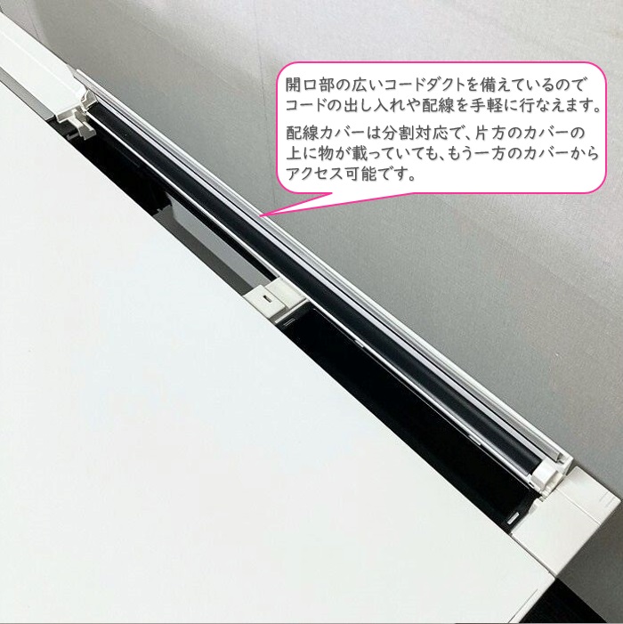 天板後方に配線ダクトカバーがついており、PCや電話の配線をまとめて整理できます。
