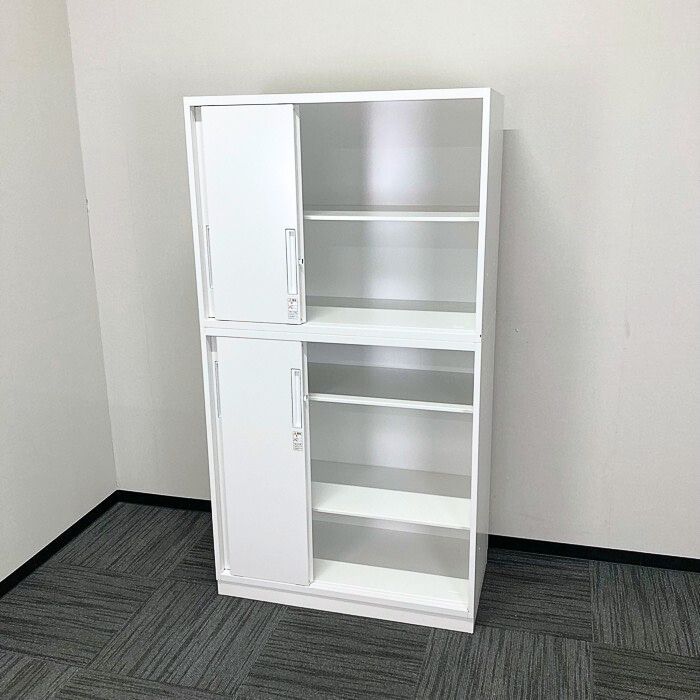 コクヨ エディアシリーズ 上下3枚引違い戸書庫 W900×D450×H1675 ホワイト 2020年製 中古