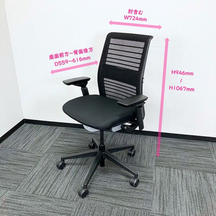 スチールケース シンクチェアシリーズ オフィスチェア HPD可動肘 3Dニット ブラックフレーム 可動ランバー ブラック 2018年製 中古