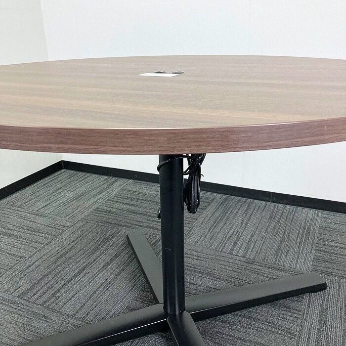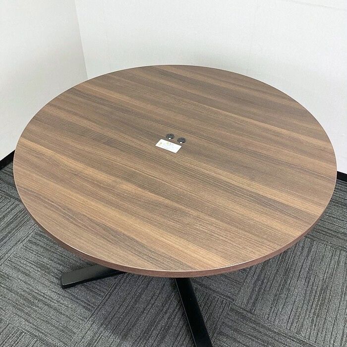 オカムラ ライブスシリーズ 丸形ミーティングテーブル 57ABGP MDA6 天板:プライズウッドダーク/脚:ネオブラック 2021年製 中古 ⑩
