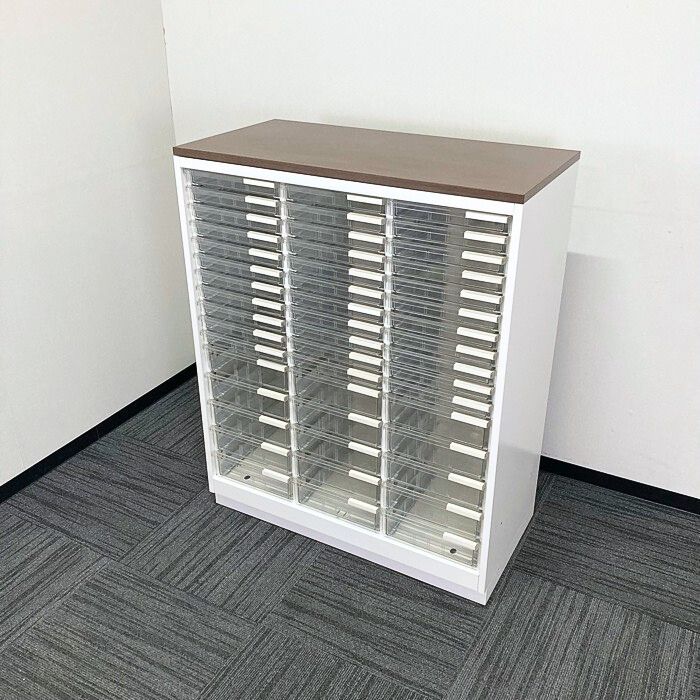 イトーキ シンラインキャビネットシリーズ クリスタルトレイ HTM-109KAF-W9 W900×D450×H1118 天板:ファインウォールナットD/本体:ホワイト 2015年製 中古 ⑩