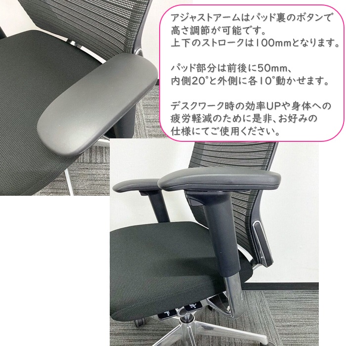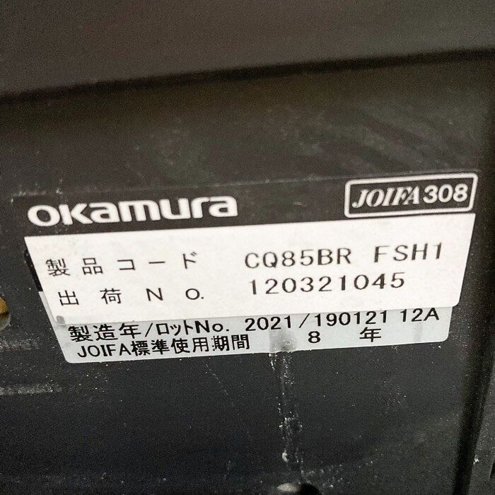 オカムラ コーラルチェアシリーズ オフィスシーティング CQ85BR FSH1 アジャストアーム付き ブラック 2021年製 中古