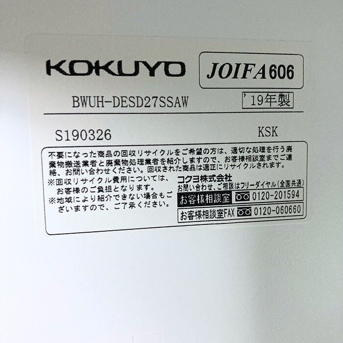 コクヨ エディアシリーズ 両開き書庫 BWUH-DESD27SSAW W700×D400×H695 ホワイト 2019年製 中古 ⑩