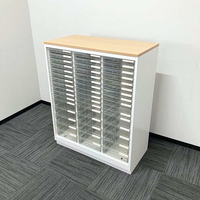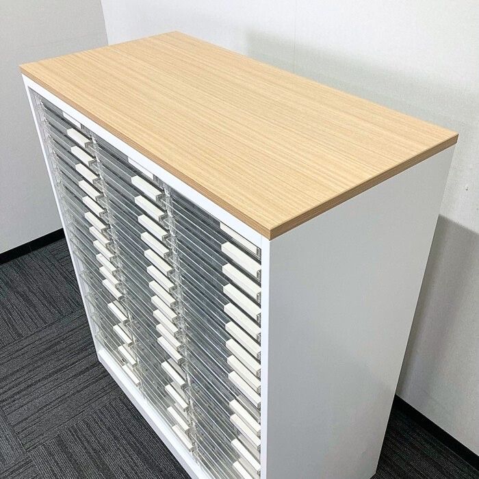イトーキ シンラインキャビネットシリーズ クリスタルトレイ HTM-109KAF-W9 W900×D450×H1118 天板:ホワイトオークM/本体:ホワイト 2015年製 中古 ⑩