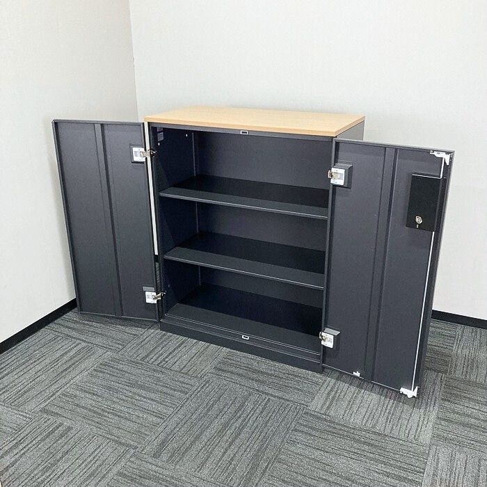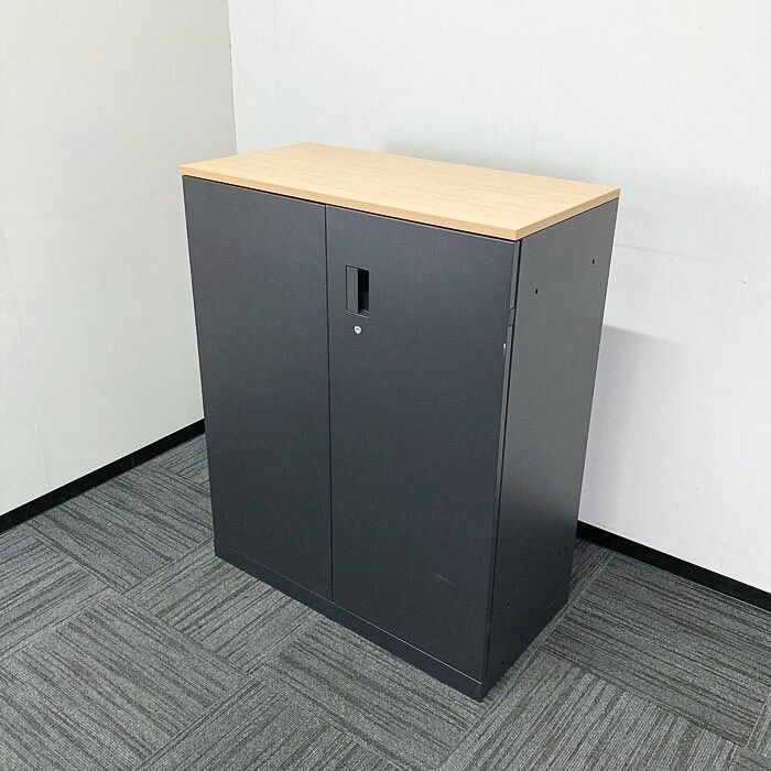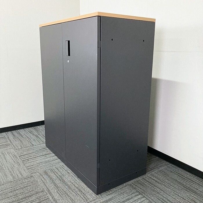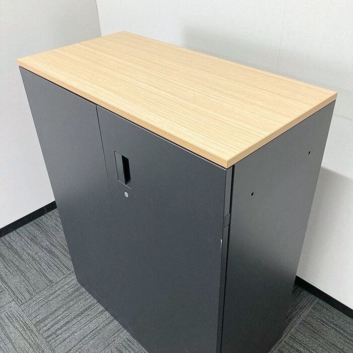 イトーキ エスキャビネットシリーズ 両開き書庫 H1090HSS-T1 W900×D450×H1118 天板:ファインウォールナットL/本体:サテンブラック 2017年製 中古 ⑩