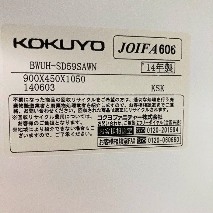 コクヨ エディアシリーズ 両開き書庫 BWUH-SD59SAWN W900×D450×H1110 ホワイト 2014年製 中古 ⑩