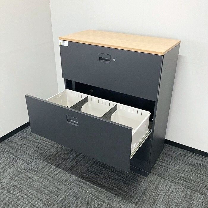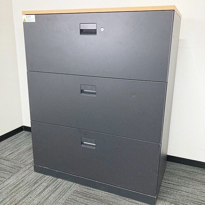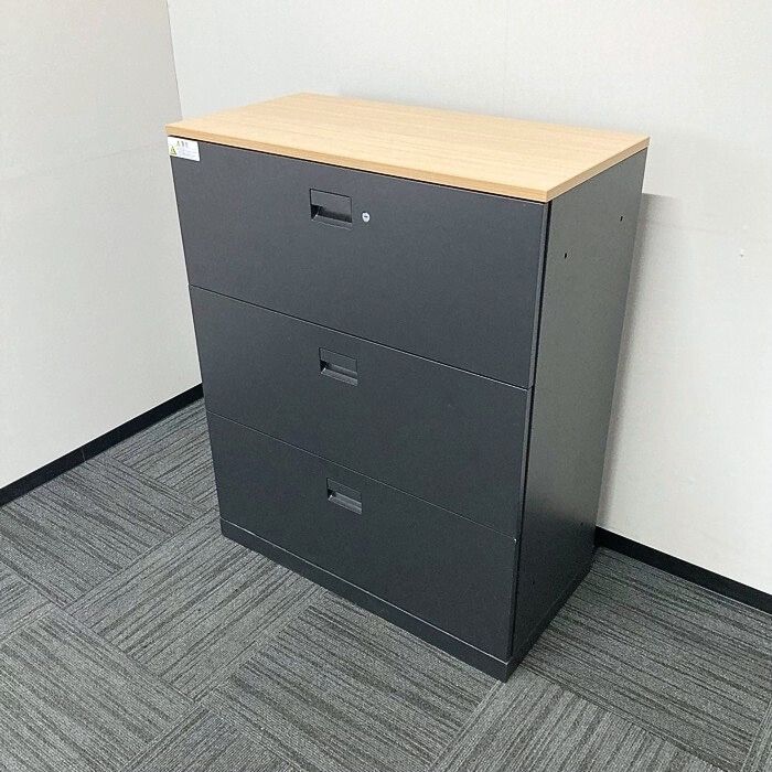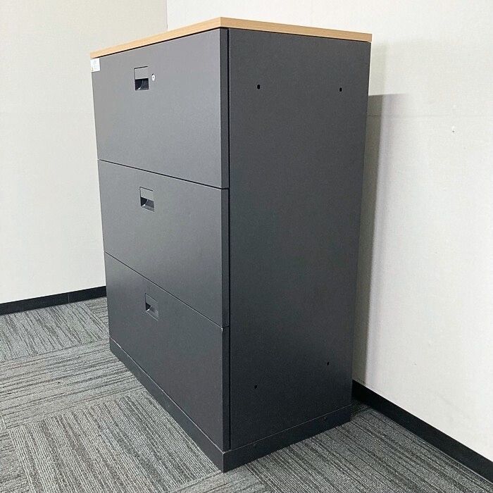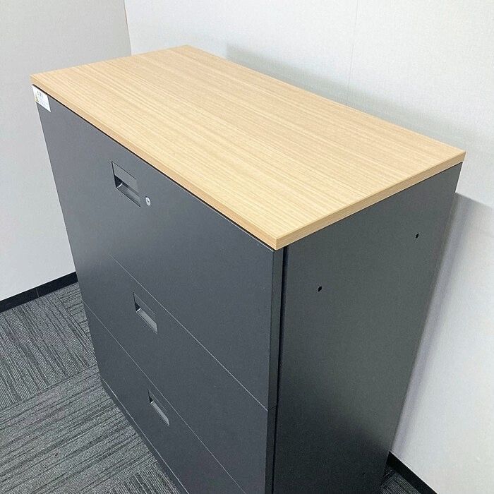 イトーキ エスキャビネットシリーズ 3段ラテラルキャビネット H1-M1090AAS-T1 W900×D450×H1118 天板:ファインウォールナットL/本体:サテンブラック 2017年製 中古 ⑩
