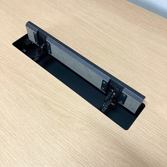 天板と同柄で両側から開閉可能な配線カバーはケーブル出しも容易な全周開口タイプです。