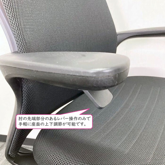 レバーを肘先部に設置し体勢を崩さずに座面の高さ調節が可能です。