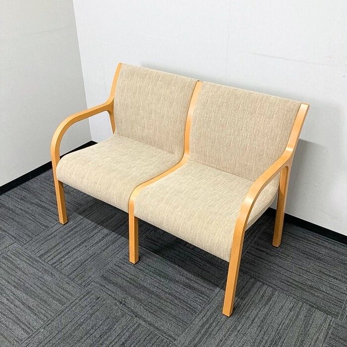 コクヨ 400シリーズ 2人掛けロビーチェア CN-W402AK512 W1100×D610×H790 ベージュ 中古 ⑳