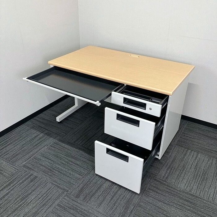 プラス フラットラインシリーズ 片袖デスク SP-T127 WM W1200×D700×H700 天板:メープル/本体:ホワイト 2017年製 中古 ⑩