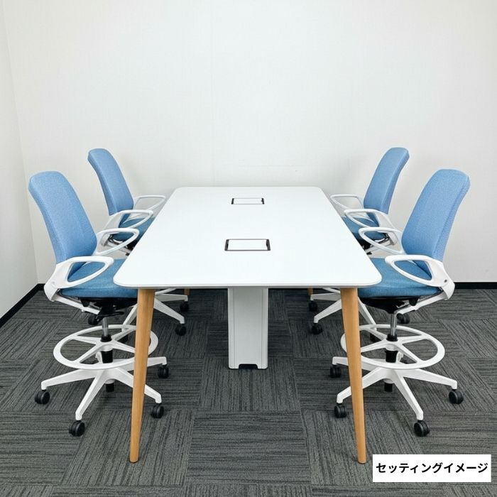 オカムラ ライブスワークテーブルシリーズ 大型ハイテーブル 3R1M3P MG99 W2800×D1200×H1000 天板:ホワイト/脚:ナチュラル 2021年製 中古 ※SALE品