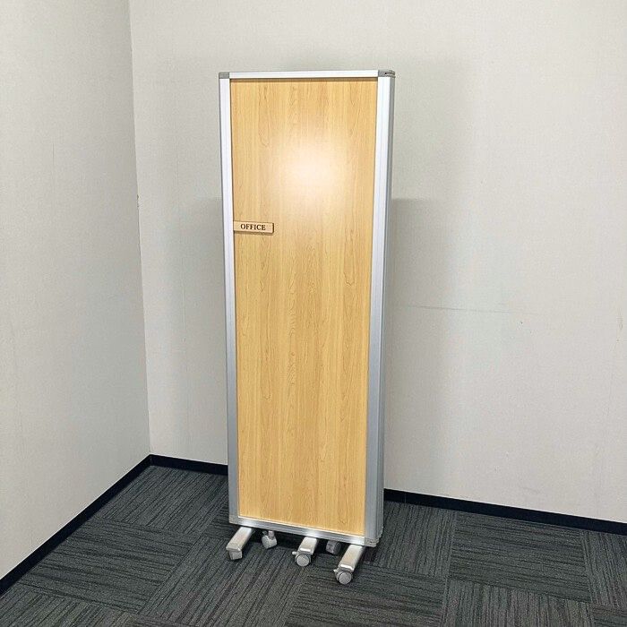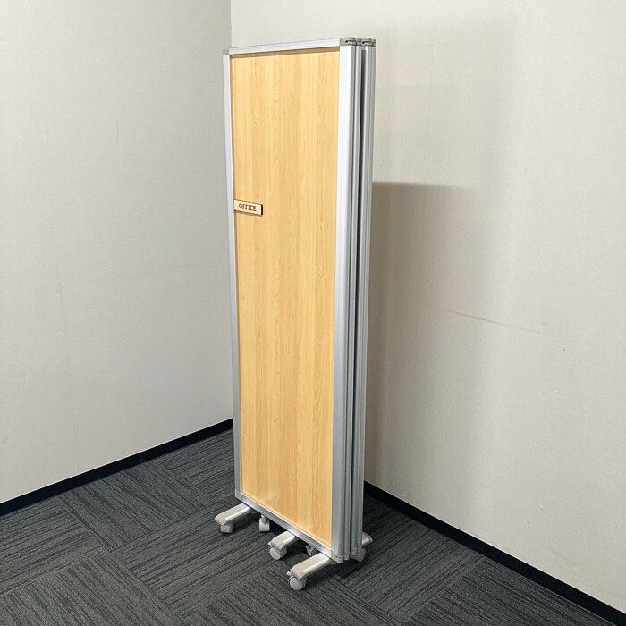 四つ折りパーティション キャスター付き W2400×D350×H1800 本体:チーク/フレーム:シルバー 中古 ⑳