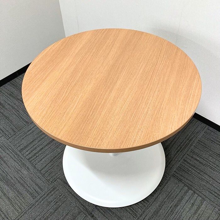 オカムラ アルトリビングシリーズ 円形テーブル MS525SB Φ750×H700 天板:ネオウッドミディアム/脚:ホワイト 2014年製 中古 ⑳