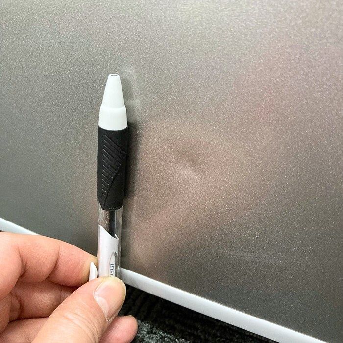 冷蔵庫側の正面に小さな打痕あり、側面に塗装剥げがあり(ともに画像参照)ますが、機能面やご使用上に問題は御座いません。