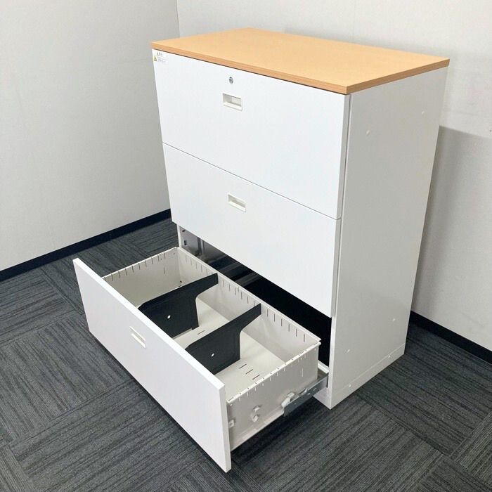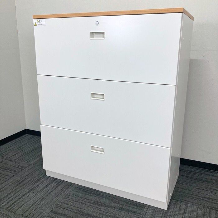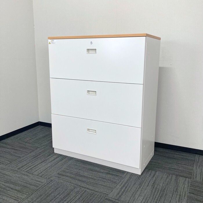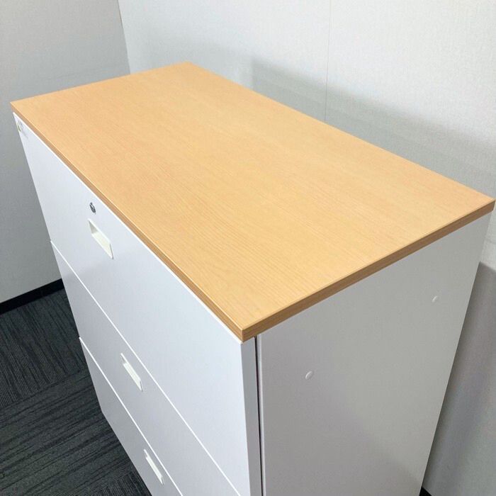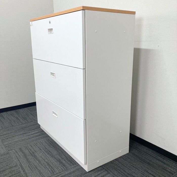 イトーキ シンラインキャビネットシリーズ 3段ラテラルキャビネット HTM-109AAS1-W9 W900×D450×H1118 天板:フレッシュメープルL/本体:ホワイト 2018年製 中古 ⑩