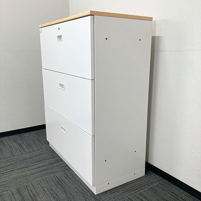 イトーキ シンラインキャビネットシリーズ 3段ラテラルキャビネット HTM-109AAS1-W9 W900×D450×H1118 天板:フレッシュメープルL/本体:ホワイト 2018年製 中古 ※SALE品