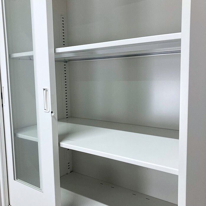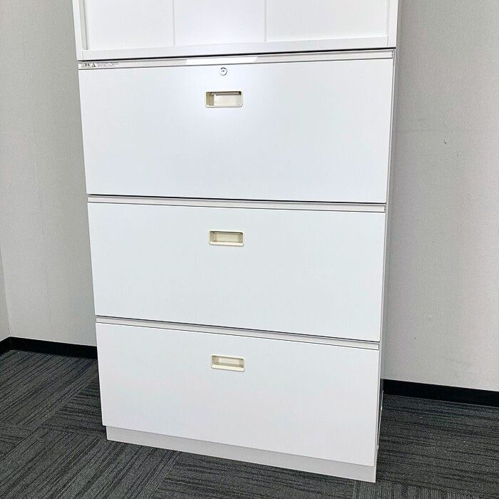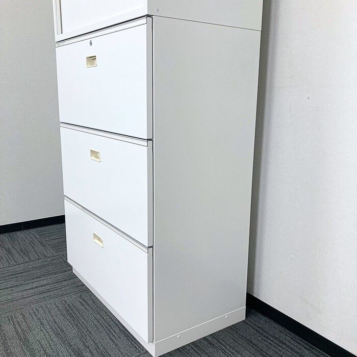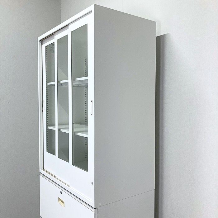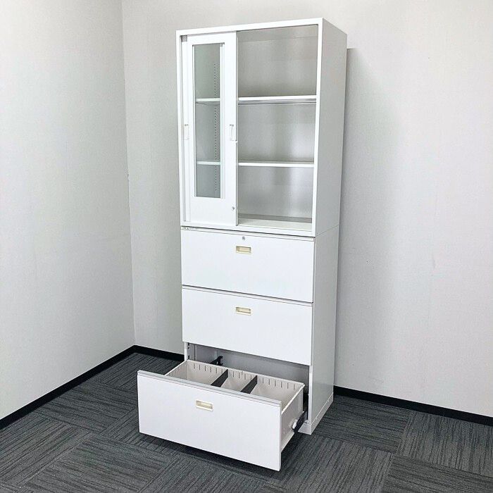 上置きはガラス扉で外部から庫内を確認でき、3枚扉で扉の開口域も広くファイルの出し入れが容易です。