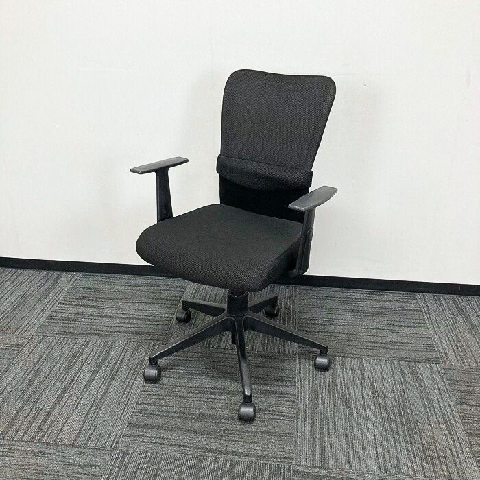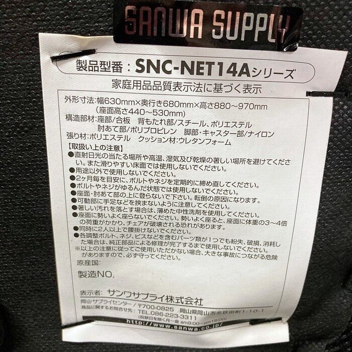 サンワサプライ オフィスチェア肘あり SNC-NET14A ランバーサポート付き ブラック 中古