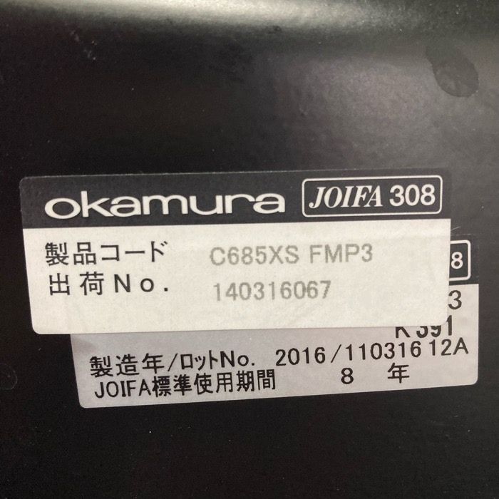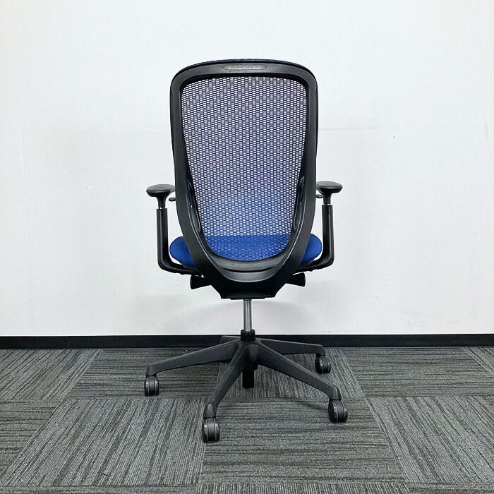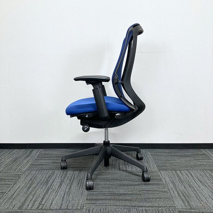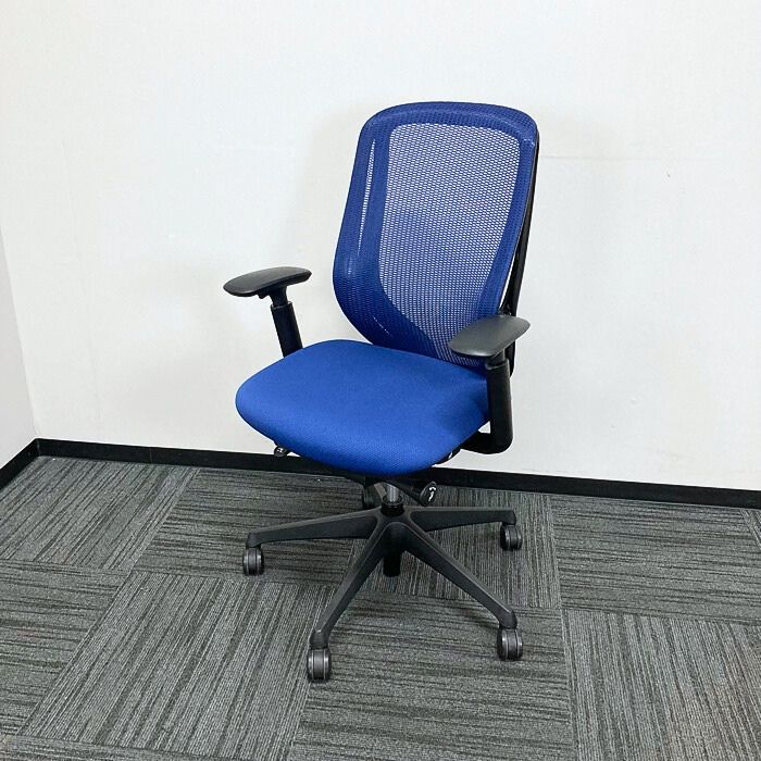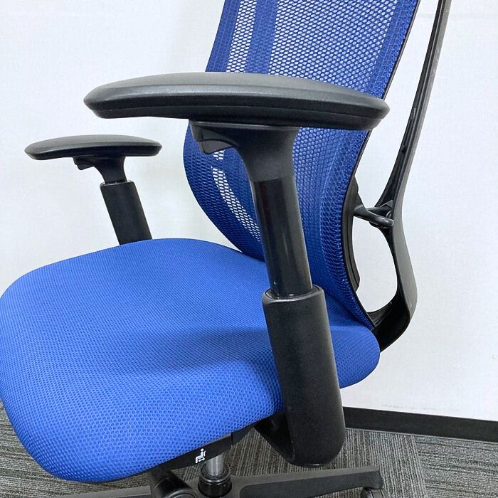 オカムラ シルフィーチェアシリーズ オフィスシーティング C685XS FMP3 アジャストアーム付き ブラックフレーム ハイバック ミディアムブルー 2016年製 中古