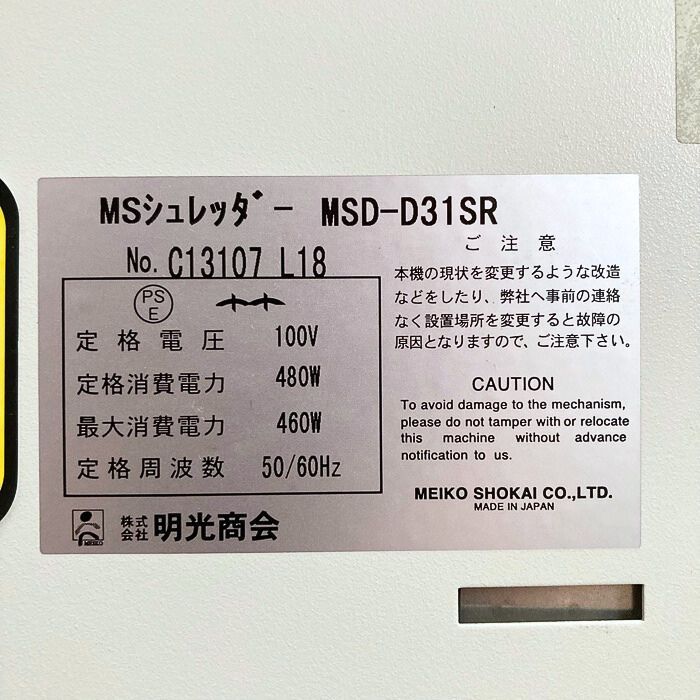 明光商会 MSシュレッダシリーズ MSD-D31SR  W700×D300×H710 質量:69kg ホワイト 2018年製 中古