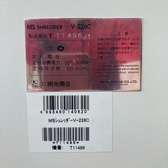 明光商会 MSシュレッダシリーズ MSD-D31SR W600×D300×H620 質量:34kg ホワイト 中古 ⑩