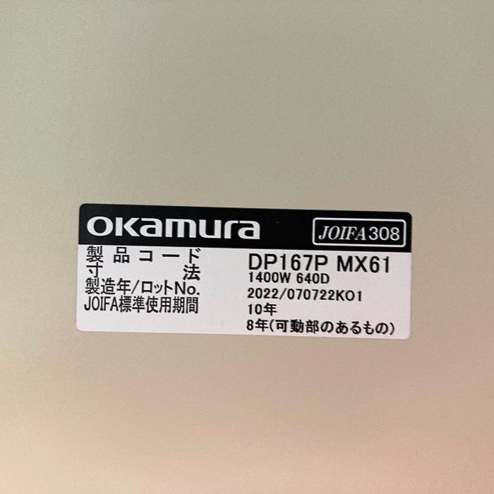 オカムラ プロユニットフリーウェイシリーズ 平デスク DP167P MX61 W1400×D725×H720 天板:プライズウッドライト/本体:ネオホワイト 2022年製 中古 ⑩