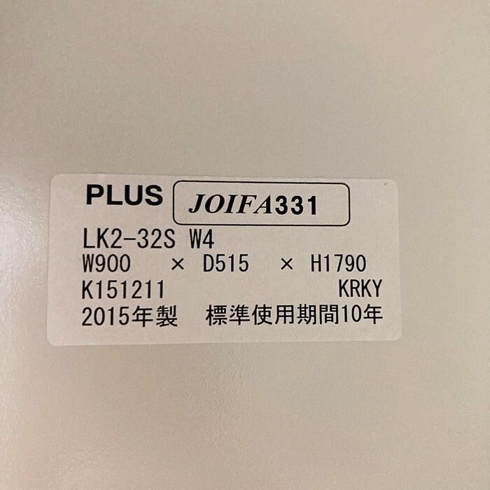 プラス LK2シリーズ 3人用ロッカー LK2-32S W4 W900×D515×H1790 ホワイト 2015年製 中古 ⑩